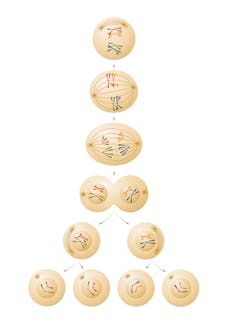 Ese genoma se organiza en cromosomas, “paquetes” de ADN muy dinámicos. Concretamente, cada célula de nuestro organismo contiene veintitrés pares de cromosomas y, de cada par, hemos heredado un cromosoma materno y otro paterno. Para que sea así, es preciso que las células precursoras de los gametos, tanto del óvulo como del espermatozoide, sufran un proceso de división specific denominado meiosis.