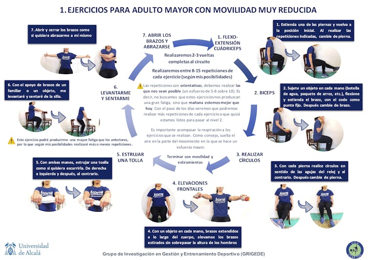 Por último, queremos añadir que el ejercicio físico en esta población debería estar programado y supervisado de forma individualizada por un profesional de las ciencias del deporte. No obstante, en esta situación de confinamiento es de very important importancia mantenerse activo, trabajando bajo la premisa de que ninguno de los ejercicios que realice debe producir dolor ni riesgos de lesión.