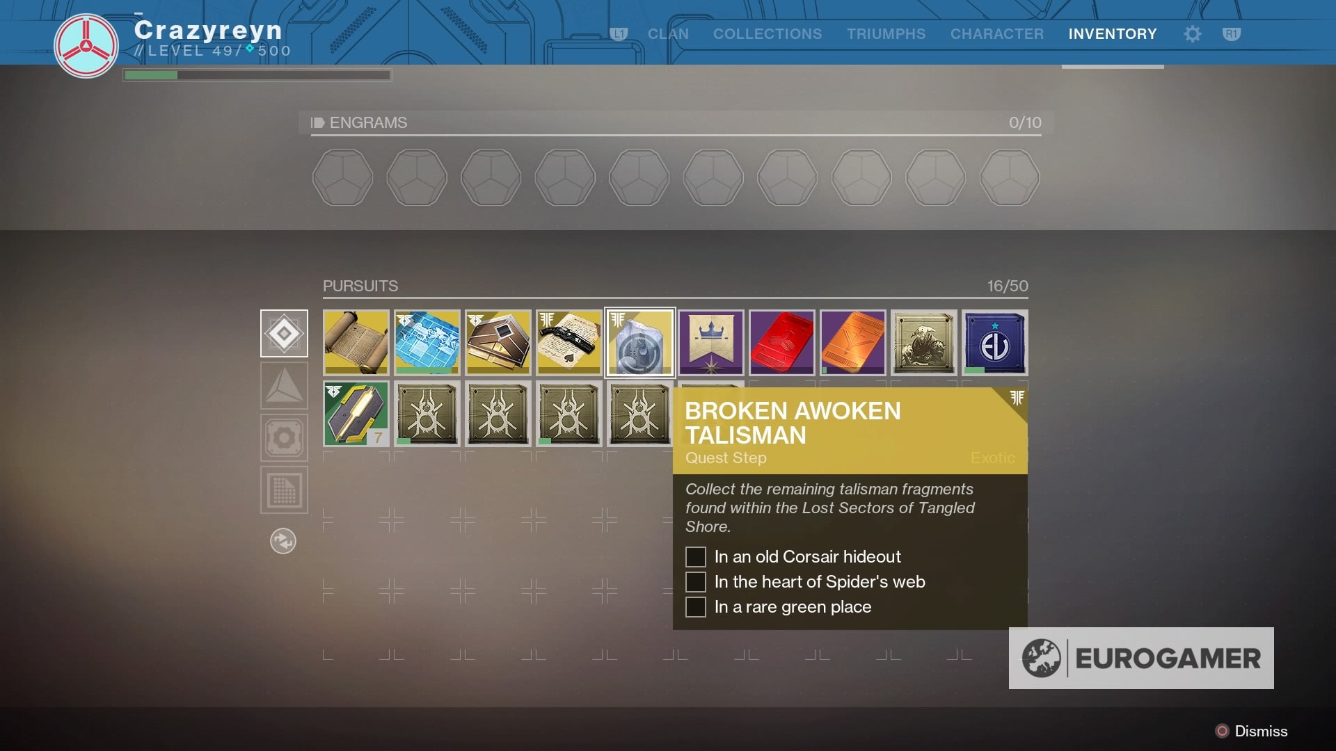Go to Ikora and Spider, who will provide you with three areas to go to to restore the Damaged Awoken Talisman – the Previous Corsair hideout, coronary heart of Spider’s net and uncommon inexperienced place