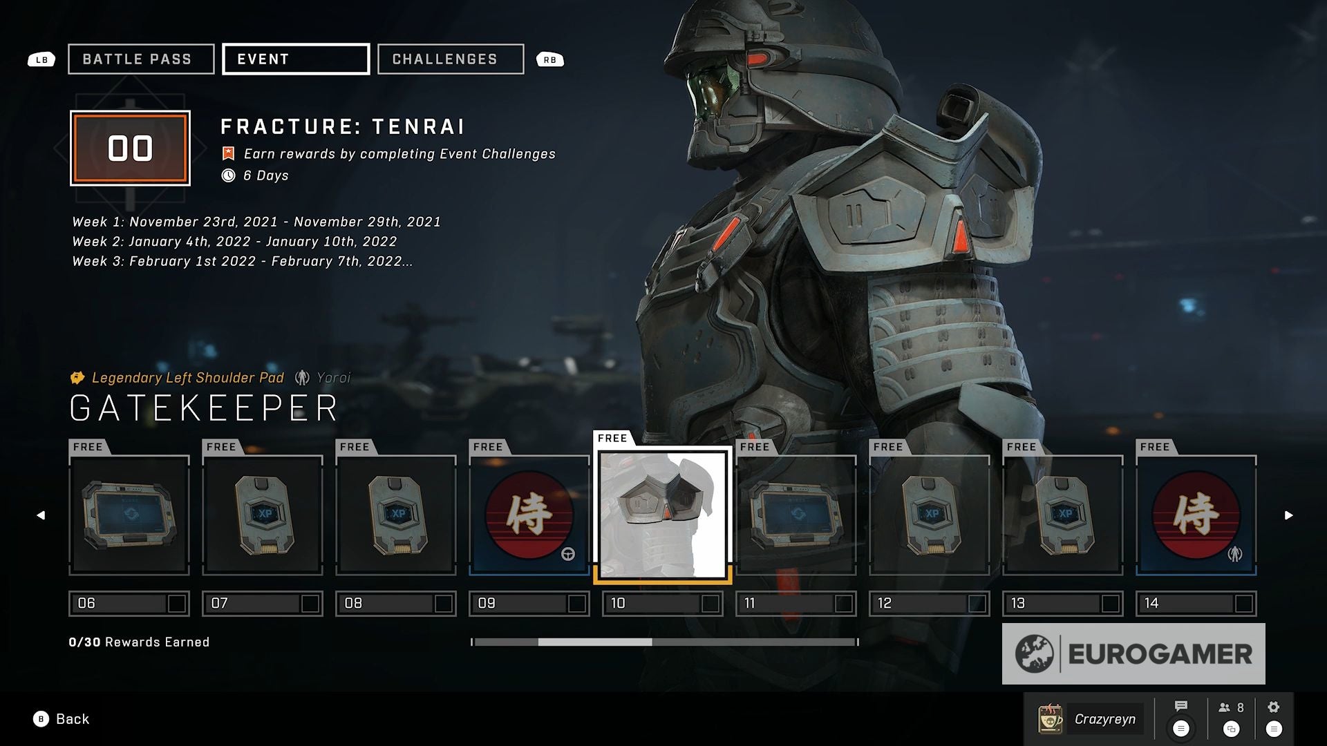 The Fracture: Tenrai occasion has its personal occasion cross which you’ll view in the identical space because the season-long battle cross and your weekly challenges.